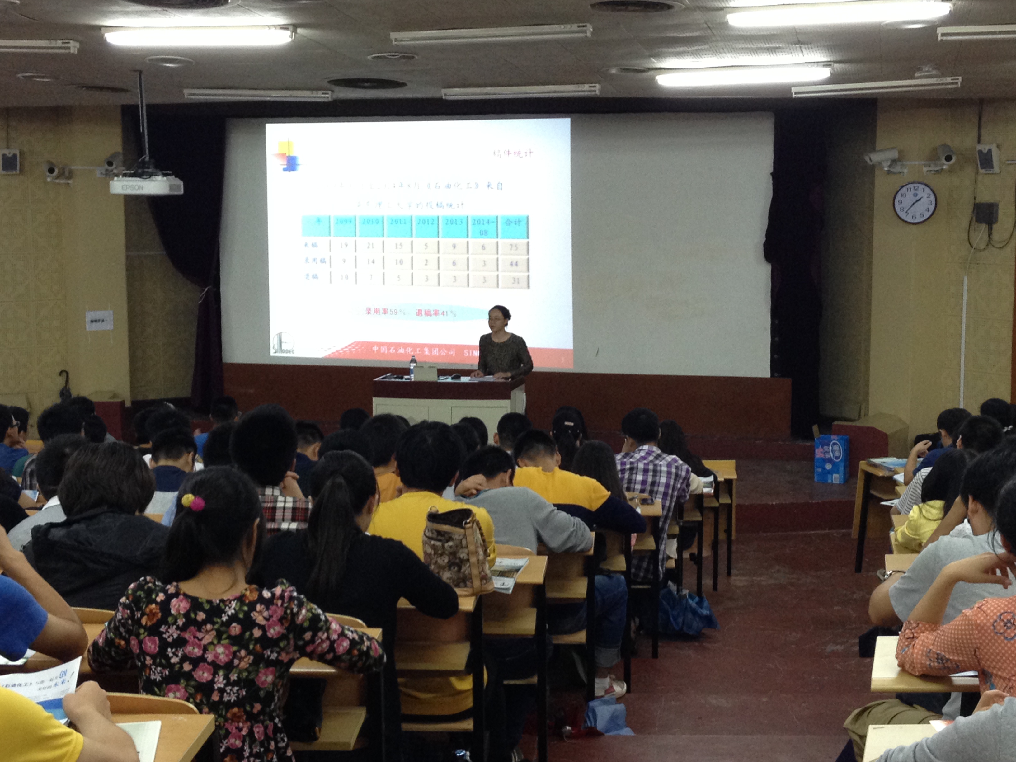 2014年9月23日下午,中国石化北京化工研究院的李明辉责任编辑应新葡的京集团4321邀请在徐汇校区七中作题为“中文科技论文的撰写”的报告,中石化北京化工研究院信息中心书记、《石油化工》副主编赵红雁、《石油化工》副主编安静、《化工环保》副主编祖国红、《化工环保》副主编叶晶菁出席报告会,新葡的京集团4321硕博研究生聆听了此次报告。