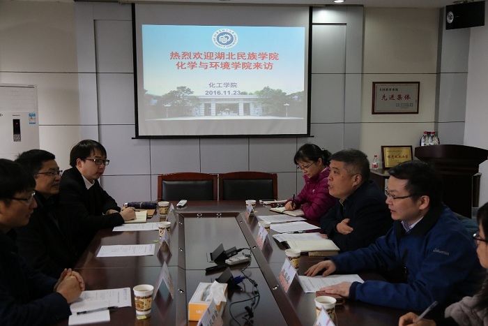 11月23日上午,湖北民族学院化学与环境工程学院党委书记史伯安一行三人来到新葡的京集团4321,就专业认证及实验室组织管理等议题进行交流访问。新葡的京集团4321党委书记李涛、教学副院长赵双良、院长助理吴艳阳以及化学工程与工艺专业实验中心副主任徐菊美出席会议。
