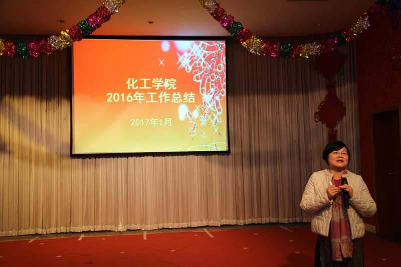 首先,院长赵玲做学院2016年工作总结并做2017年工作展望,她肯定了2016年学院的各方面工作,回顾了过去一年里学院的工作以及所取得的荣誉,感谢学院教职工一年来的辛勤耕耘,并表达了对新年的期许。随后,学院党委书记李涛致辞,他表示,在过去的一年里,全院职工团结一心,群策群力,圆满完成了各项工作;相信在2017年里,大家将继续倾注智慧和热情,取得新的突破,攀登新的高峰。