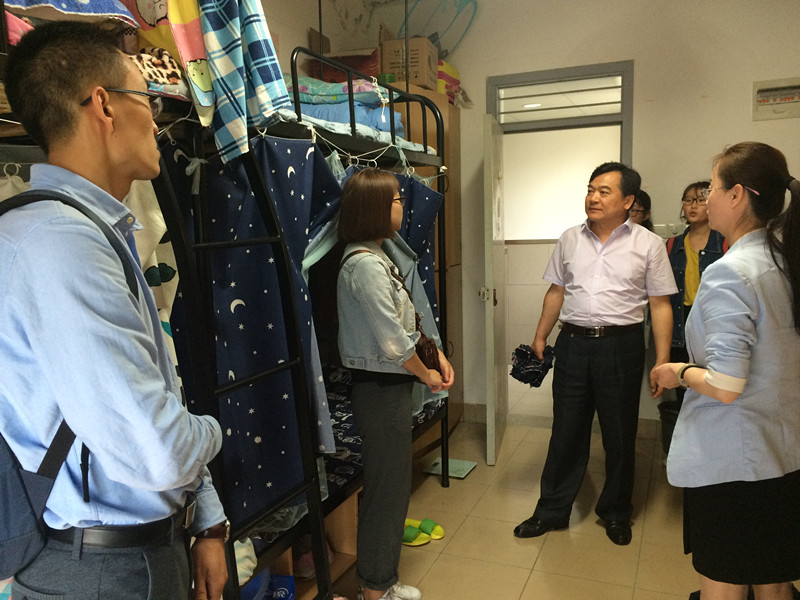 5月12日中午,吕书记一行在新葡的京集团4321辅导员的陪同下来到奉贤校区与石河子大学来新葡京官网新葡的京集团4321学习的50名交流生进行亲切座谈。吕德生书记代表石河子大学新葡的京集团4321表达了对同学们的关心和牵挂,并对交流生提出了要求,一是希望同学们提高思想认识,一言一行展示石河子大学优秀学生的风采;二是希望同学们珍惜交流学习的机会,惜时如金,学好专业知识;三是希望同学们发奋图强,提高综合素质,为将来走向社会和石河子大学的发展打好基础、做出成绩。教学科研办李洪玲主任一一解答了同学们在培养、组织发展、医保等方面的问题。我院辅导员还对有关乘车优惠、评优评奖相关政策进行了宣传。座谈会后老师们走访了学生寝室,了解了同学们的衣食住行,肯定了学校的生活硬件设施,引导同学们爱寝如家,形成和谐向上的寝室文化。