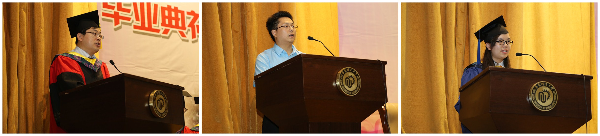 龙东辉教授代表教师发言,感谢研究生对我们每一位导师的科研工作做出的巨大贡献,感谢他们用最美好的青春年华陪我们度过的难忘时光。他谈到,毕业只是人生的一个短暂的瞬间,而奋斗才是人生永恒的主题。今天,我们不是庆祝结束,而是迎接开始。就让生命之舟,在新的岁月港湾里启航,承载着对未来的憧憬和畅想,乘风破浪,直挂云帆。期待着同学们事业有成,一生精彩。