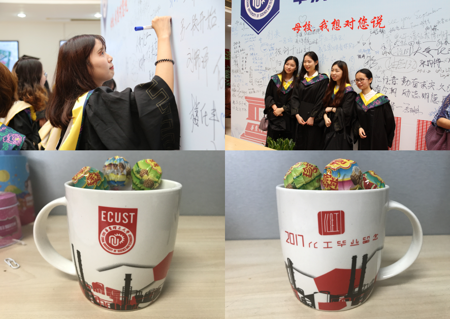 赵楠作为毕业生代表上台发言,以红烧肉华理情开篇,分享了大学四年在团学组织、各类竞赛中的经历和感悟,表达了对母校深深的惜别之情,借建校65周年华理、新葡的京集团4321取得的各项成绩,激励化工学子勤奋求真、励志明德,为母校争光。16届毕业生陆栋栋作为校友代表向毕业生们分享了在步入社会后的成长感悟,告诫学弟学妹们要明确自我定位,合理设定目标,勇于自我表现,奋力实现自我。王评作为班导师代表,表达了对毕业生们的依依不舍之情,并希望同学们能在未来的人生道路上好好生活,不忘初心。随后,毕业生代表向全体班导师献花,表达对班导师及母校的感恩之情。学院也为毕业生们准备了由校友设计并制作的独具化工特色的水杯,杯中装上糖果预祝新一届校友甜甜蜜蜜一辈子。