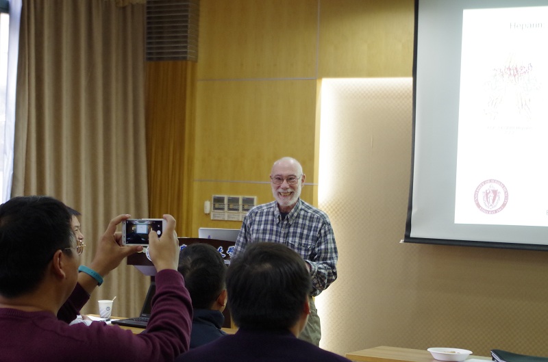 会议期间,Paul Dubin教授为新葡京官网师生作了题为“Non-chromatographic purification of a monoclonal antibody: complex coacervation with hyaluronic acid”的学术报告。在报告中,Dubin教授系统的介绍了聚电解质与蛋白质的作用机理以及聚电解质材料在生物质提取、分离、纯化等方面的应用,并就其课题组在上述的研究成果进行了分享。与会师生反响热烈,踊跃提问,Paul Dubin教授进行了详细解答。