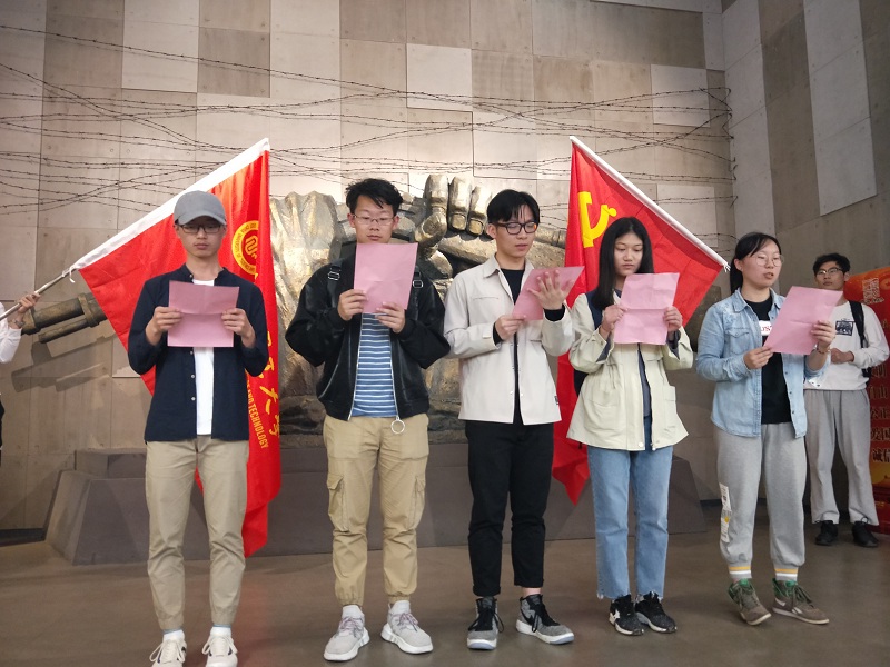 2018年4月20日,新葡的京集团432140余名入党积极分子在辅导员强莉老师、刘宗慧老师带领下,前往金山卫日军登陆点抗战遗址,开展“铭记峥嵘岁月 吟诵爱国诗篇”主题实践活动。