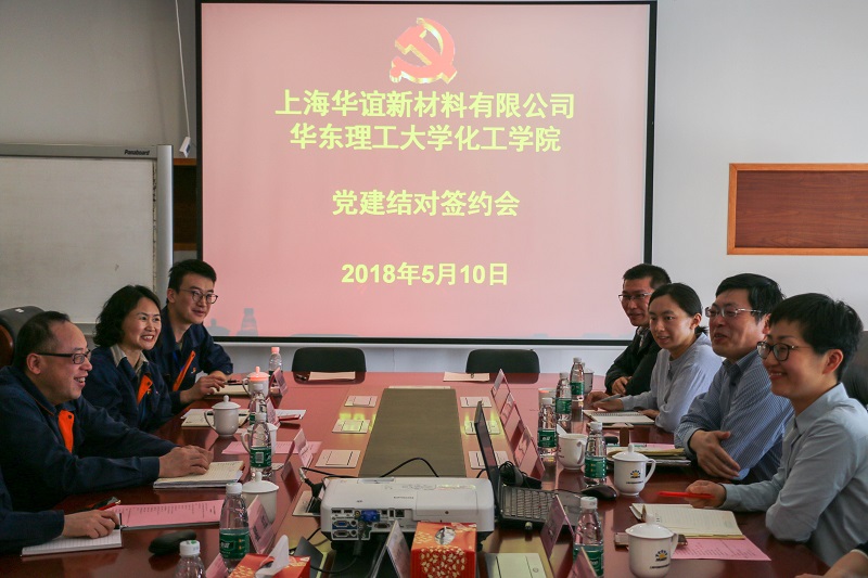 为深入学习贯彻党的十九大精神,落实校第十一次党代会精神,不断夯实基层党建工作,深化产教融合。5月10日上午,新葡的京集团4321与上海华谊新材料有限公司党建共建签约仪式在上海华谊新材料有限公司漕泾生产基地正式举行。新葡的京集团4321党委书记、院长朱学栋,党委副书记高艺霞,上海华谊新材料有限公司党委书记、董事长褚小东,副书记江海出席了此次签约仪式。参加本次交流的还有在华谊新材料工作的新葡京官网众多校友以及研究生兼职辅导员支部的教师和研究生工程163班党支部的全体成员。