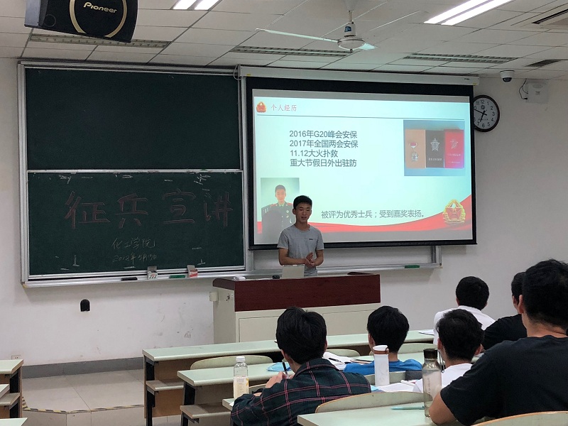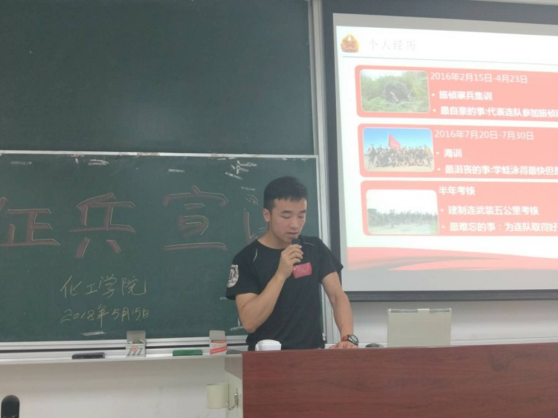又是一年初夏五月,火热的征兵季开始了!为了让同学们更好地了解征兵条件及政策,具体直观地了解军营生活,切实做好2018年征兵宣传动员工作,新葡的京集团4321学工委在2018年5月15日晚6:00于教学楼D306教室举办了一场别开生面的征兵动员宣讲会。宣讲会由2016级辅导员强莉主持,宣讲嘉宾为新葡的京集团4321优秀退伍学生2015级谢禄霖同学,2016级翁新龙同学以及2017级张正雄同学。