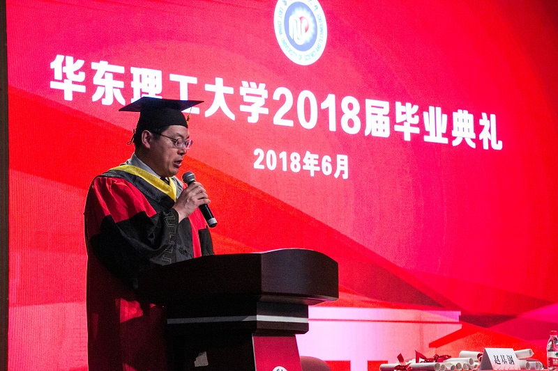 仪式转播结束后,新葡的京集团4321会场2018届毕业生代表崔然上台发言,分享了在华理生活的点点滴滴,表达了对母校、同窗和老师们的依依惜别之情,同时也表示要传承与践行华理勤奋求实、励志明德的校训,为母校争光。