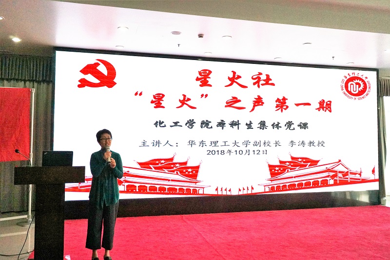 10月12日中午,由新葡的京集团4321、星火社共同主办的“星火”之声系列活动第一期新葡的京集团4321本科生集体党课于奉贤校区通海厅举行,新葡的京集团4321副校长李涛教授受邀担任主讲嘉宾,为新葡的京集团4321师生带来“全面解读党章,从‘新’出发”党课。讲座由新葡的京集团4321党委副书记高艺霞主持。来自新葡的京集团4321的100余名16级至18级党员、发展对象、入党积极分子认真聆听了讲座,现场氛围融洽。