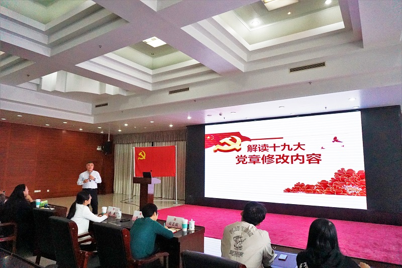 李涛教授介绍了党章的发展历程,以党章的地位作用入题,总结党的一大到十八大之间党章的变化,并指出中国共产党章程不断根据中国国情进行调整,做到“永不停滞、永不僵化”。同时报告重点介绍了党的十九大党章的变化、修改过程和特点,其中修改内容包括中国特色社会主义文化 、实现中华民族伟大复兴中国梦、社会矛盾转化而做出的相应修改、推进国家治理体系和治理能力现代化、人类命运共同体一带一路、实现巡视全覆盖推进两学一做等十项内容,也用生动形象的语言阐述了党的十九大党章修改的重大意义。