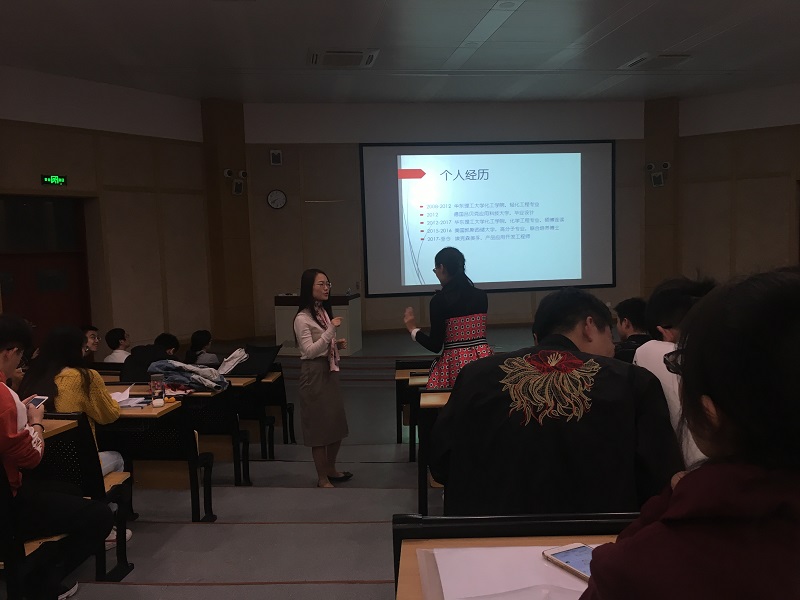 瞿红经理则从华谊新材料的发展出发,通过行业发展、杰出人物、求职中关注的问题等方面出发,向新葡的京集团4321师生分享了从企业角度对于应届生求职能力、社会上行业认知、个人未来发展通道等的相关信息,强调应届生在求职前一定要衡量自身能力,综合考量,迈好求职第一步。校友张雯斐采用现场提问的方式,通过如何规划研究生生活、求职面试技巧、职业发展规划等问题为学弟学妹们分享了自己在大学从本科、研究生到博士在不同阶段对于自身能路的培养,同时将自己求职以及工作后对于面试技巧以及在大行业背景下职业发展规划应注意的事情进行了分享。