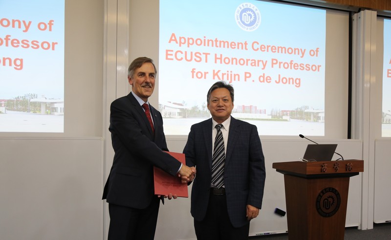 11月13日下午,荷兰乌特勒支大学(Utrecht University)著名催化学家Krijn P. de Jong教授受聘为新葡京官网名誉教授仪式在徐汇校区商学院新大楼401室举行。副校长辛忠教授,新葡的京集团4321党委书记、院长朱学栋教授,新葡的京集团4321副院长、化学工程联合国家重点实验室主任周兴贵教授,上海交通大学肖文德教授,新葡的京集团4321部分师生参加了此次受聘仪式。辛忠副校长代表学校发表致辞,对Krijn P. de Jong教授受聘为新葡京官网名誉教授表示诚挚欢迎和衷心感谢,并向Krijn P. de Jong教授颁发名誉教授聘书和佩戴校徽。辛忠副校长表示,Krijn P. de Jong教授受聘为新葡京官网名誉教授,成为我们的一员,将进一步推进新葡京官网化工学科的建设和发展,提升新葡京官网在该领域的科研水平。Krijn P. de Jong教授首先感谢了新葡京官网授予此次殊荣,并对新葡京官网近几年来取得的成绩表示由衷高兴,表示将会全力关心、支持新葡京官网化工学科的建设和发展。