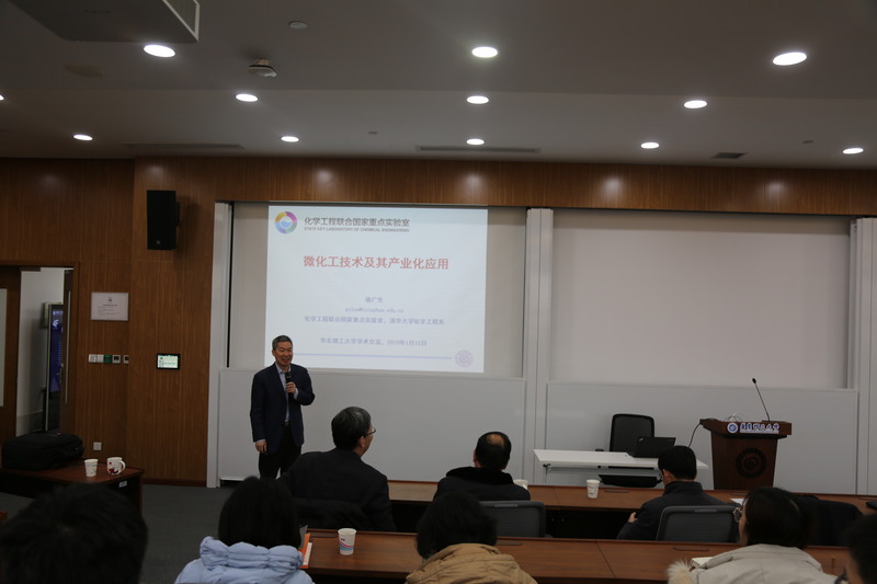 2019年1月15日上午,应新葡的京集团4321邀请,清华大学化学工程联合国家重点实验室主任骆广生教授,在徐汇校区商学院新大楼401室,为新葡京官网新葡的京集团4321师生做了题为“微化工技术”的精彩学术报告。新葡的京集团4321党委书记朱学栋教授,新葡的京集团4321院长李春忠教授,新葡的京集团4321副院长刘殿华教授,新葡的京集团4321副院长、化学工程联合国家重点实验室主任周兴贵教授等学院领导及部分师生参加了这次学术报告会。李春忠院长主持了学术报告会,介绍了骆广生教授的学术经历以及在微化工技术研究方面的基本情况。骆广生教授高屋建瓴,从我国化工产业的重大发展需求以及解决“卡脖子”产品和技术出发,引出微化工技术的重要性,然后介绍了其课题组在微反应元件、元件阵列、微反应设备和微反应系统方面所做的工作,最后介绍了其课题组在微化工技术产业应用上的实际案例。学术报告结束后,新葡的京集团4321师生踊跃提问,积极求教,并发表对微化工技术的一些看法,骆广生教授深入细致地回答了师生提出的问题。