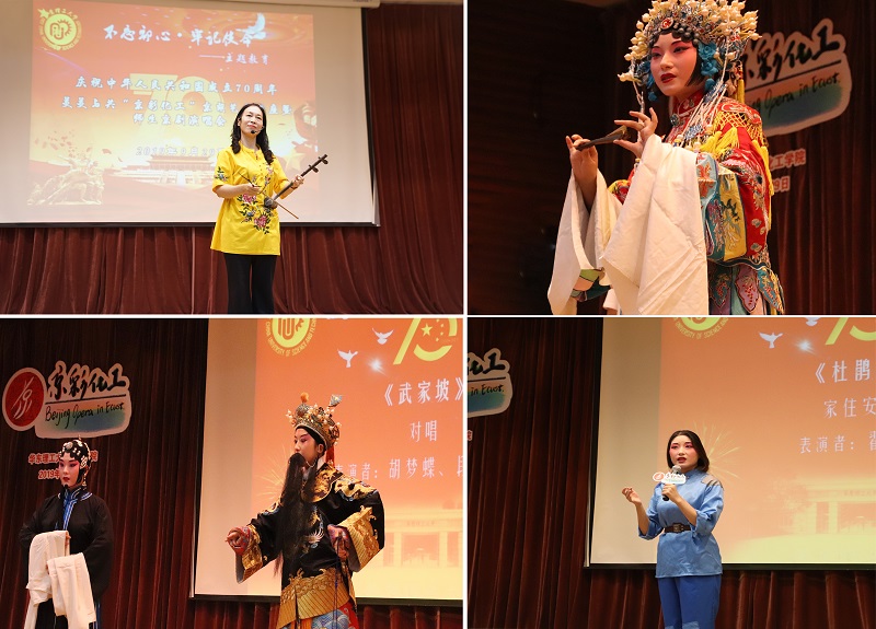 9月29日晚新葡的京集团4321在奉贤校区敬贤堂举办美美与共“京彩化工”京胡艺术讲座暨师生京剧演唱会,以一场传统文化盛宴为祖国70华诞庆生。上海京剧院国家一级琴师周晓铭受邀带来精彩的京胡艺术讲座。闵行区政协委员、闵行区京剧票友协会会长余剑强,党委副书记高艺霞,校工会京剧社社长李廷雨、学院全体本科生辅导员及300余名学生参加了本次活动。