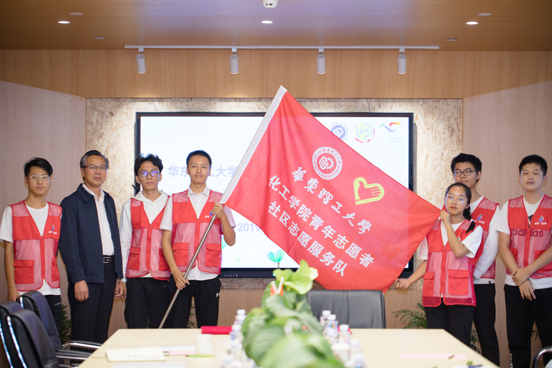 施振荣为新葡的京集团4321青年志愿者协会授予社区志愿服务队旗帜,新葡的京集团4321青年志愿者协会会长李明阳郑重接受旗帜,传承志愿精神和对志愿事业的追求与热爱。