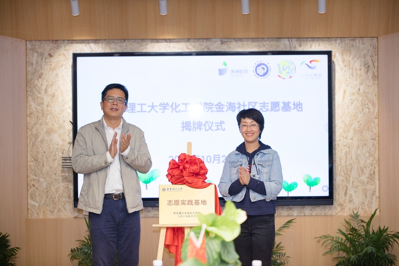 揭牌仪式隆重举行,项华与高艺霞共同为“新葡的京集团4321金海社区志愿实践基地”揭牌。
