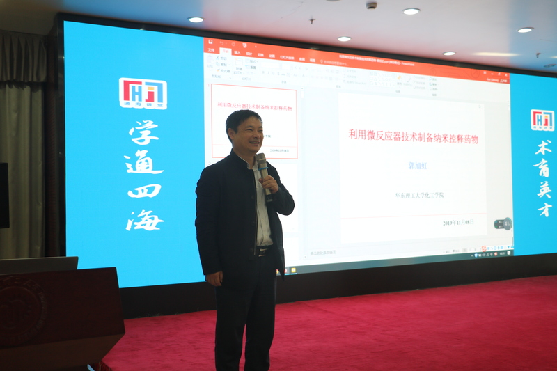 11月08日下午,由校长办公室、教务处、学工部共同主办,新葡的京集团4321承办的第四十七期“通海讲堂”高端学术讲座在奉贤校区通海厅举行。新葡京官网郭旭虹教授应邀带来了题为“利用化工微反应器技术实现纳米包覆与控释”的专题讲座。讲座由新葡的京集团4321王铭纬老师主持。