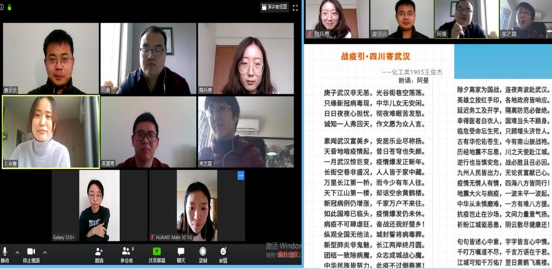 首先,全体党员认真学习了习近平总书记在统筹推进新冠肺炎疫情防控和经济社会发展工作部署会议上的重要讲话精神,并分享了读教育部思政司党支部致全国高校辅导员的一封信的感想,共话初心使命。疫情就是命令,防控就是责任,各辅导员结合工作实际就“疫”常时刻下的学生党建、团建、学业帮扶、心理疏导、就业服务、民族教育等方面发表了看法。他们认真履行岗位职责,利用网络平台加强与学生和家长的沟通联系,传递爱与温暖,确保学生管理和服务的持续高效,体现了辅导员的责任与担当。此外,阿曼·阿吉为支部成员深情朗诵了由2019级本科生王俊杰为武汉创作的“抗疫檄文”--《战疫引•四川寄武汉》。