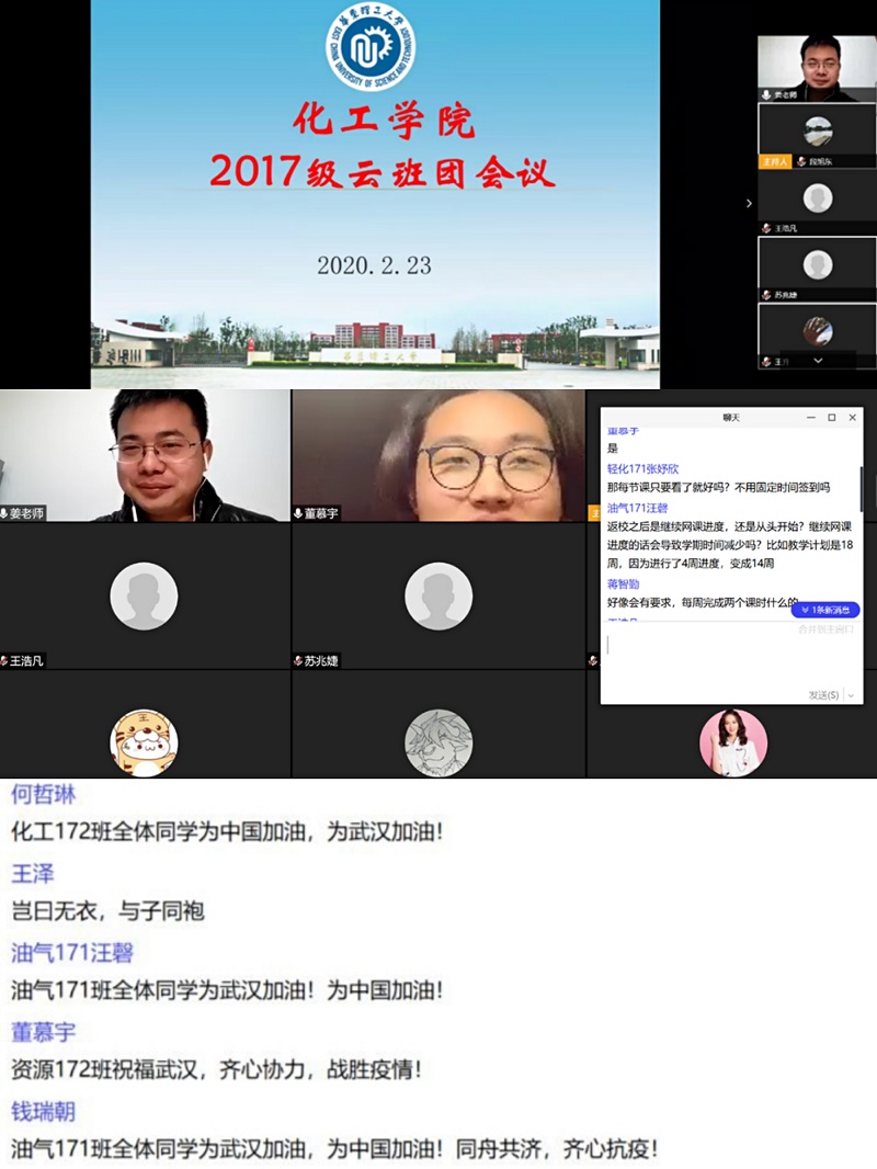 为积极响应学校“停课不停学“的号召,为线上开学做好更充分的准备,保障年级各项工作有序开展,新葡的京集团43212017级通过腾讯会议平台分别于2月23日、2月29日召开了云班团会议和年级大会,共计400余名学生参加会议。