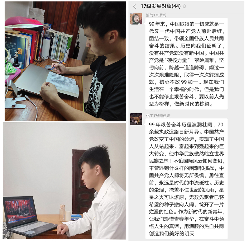 此外,新葡的京集团4321还举办了唱一首红歌、读一本红色经典著作、看一部红色电影、发表一段七一感言等系列线上活动。通过“与史对话”四史学习教育活动,引导学生党员从不同角度深入理解“四史”教育的历史意义和精神内涵,自觉担当时代责任,坚守初心,砥砺前行。