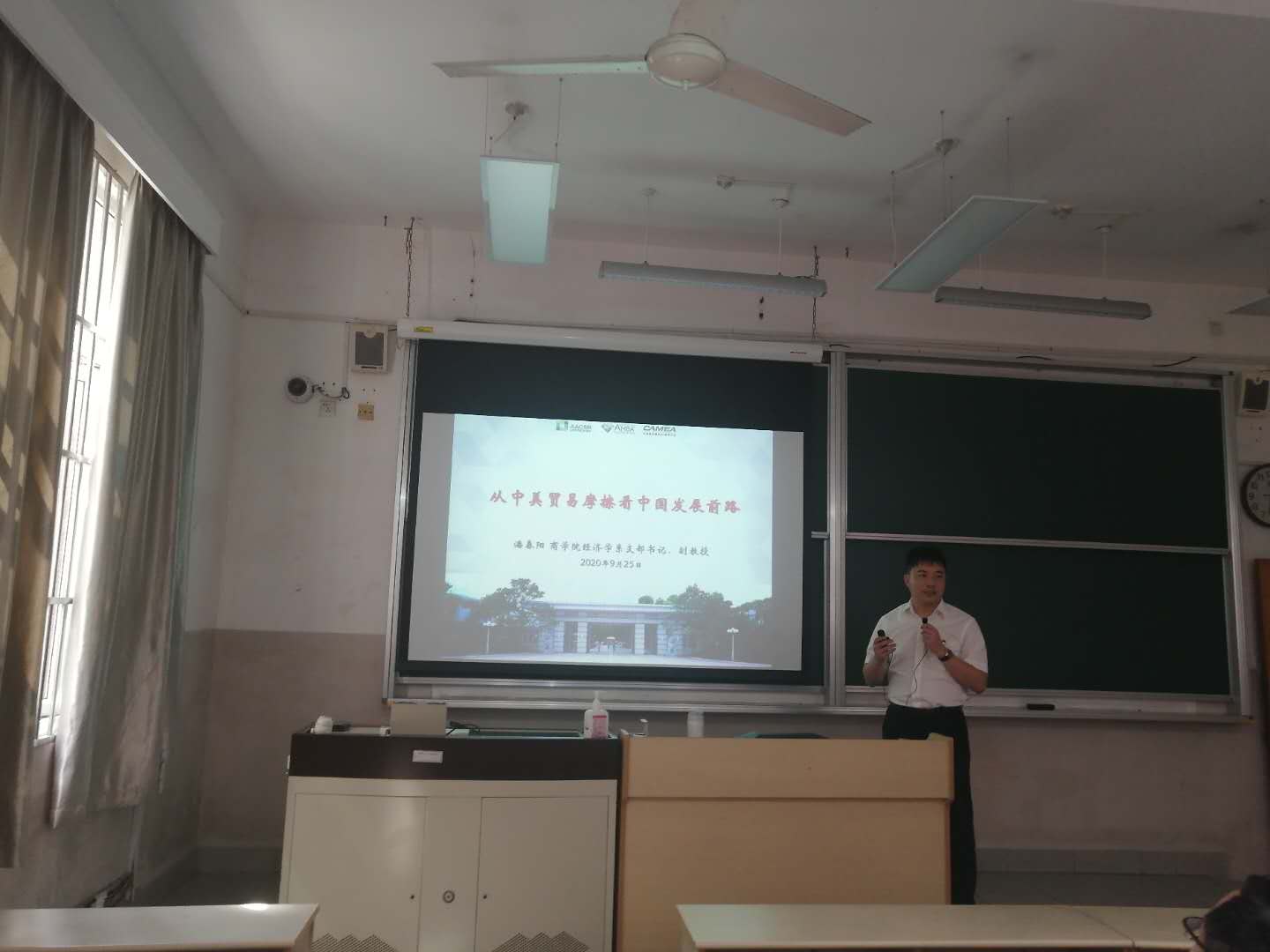 2020年9月25日,新葡的京集团4321联合化学反应研究所党支部、石油加工研究所党支部、有机化工实验中心热力学党支部和产品工程系、测试平台联合党支部及新葡的京集团4321研究生第一党支部共同邀请商学院潘春阳副教授来新葡的京集团4321作“从中美贸易摩擦看中国发展前路”的专题报告。参加此次组织生活的共有57名中共党员。