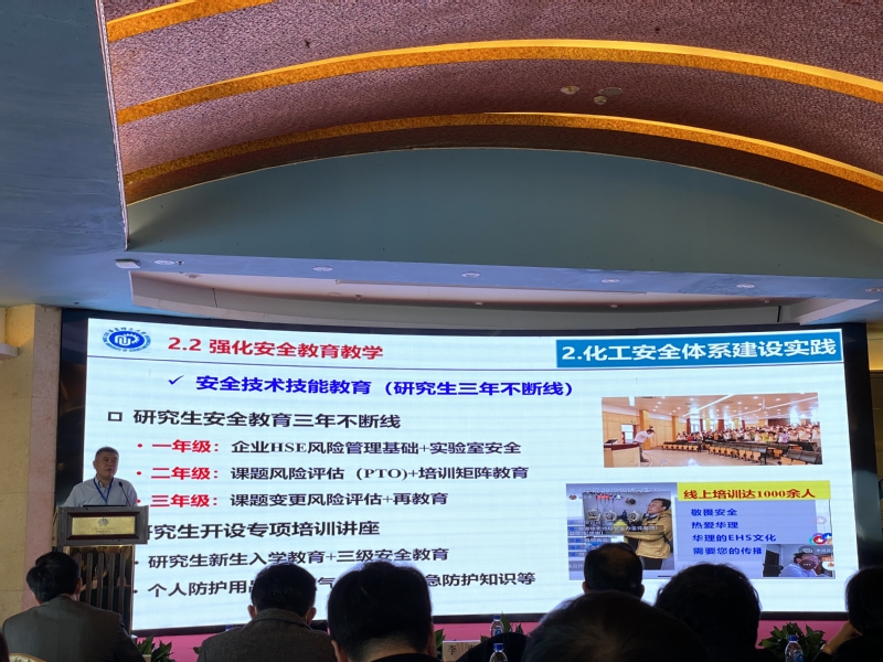 李涛在大会上作了《高校化工安全体系建设-以新葡的京集团4321为例>》的邀请报告,介绍了新葡京官网新葡的京集团4321本科生和研究生的化工安全教育教学实践,以及安全教育培训矩阵;同时,介绍了新葡京官网在化工实验室安全保障方面的完善措施,推进实验室HSE管家服务系统,提升化工安全信息化技术水平。