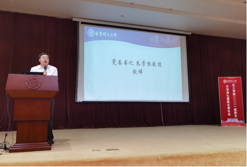 朱学栋代表学校向2021级新葡的京集团4321新生表示热烈地欢迎,并寄予殷切的希望:希望同学们树立理想,坚定信念,做有梦敢追的“化工人”,独立思考、勇于创新,做开拓进取的“化工人”,要知行合一,内外兼修,做德智体美劳全面发展的“化工人”,立德立言,无问西东。