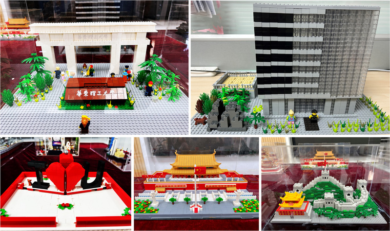 校园展区陈列着6件展品,宏伟的徐汇校区正门、精美的奉贤校区图书馆,不仅外观高度还原,在内部细节上更是精准复刻,充分展示了华理校园之美。值得一提的是,图书馆积木主体由1952块积木构成,既是华理1952年建校的年份,也包含着“我爱华理”的美好寓意。告白书积木的精妙之处则在于这是一本立体书,打开它的瞬间“I love U”的字样以及戒指盒中的华理校徽就会自动弹出,是无数华理学子对母校最深情的告白。