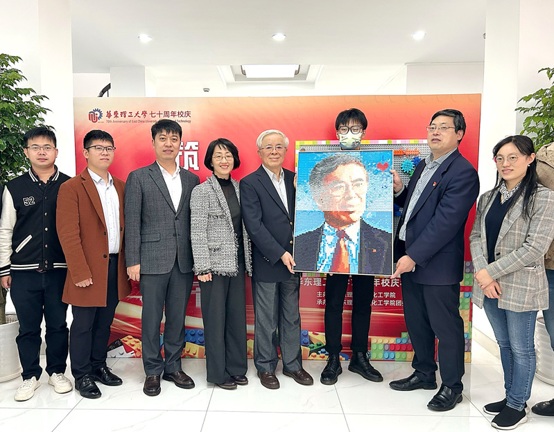 开幕式最后,师生为袁渭康院士赠送了定制积木画。袁渭康院士表示,此次活动意义非凡,通过这些作品,能够感受华理学子对母校的脉脉深情。同时,袁先生希望同学们学以致用,投身化工研究,勇攀科学高峰,用自己的努力为母校增光添彩。