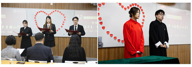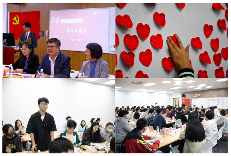 接着,三名本科生党员郭鹏宇、徐希阳和李佳璇进行了题为《寸心寄华夏 岁月赠山河》的金句朗诵,颂出青年学子对党和祖国的深情告白。