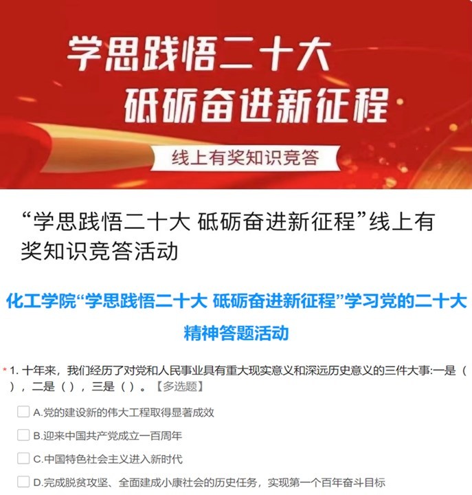为深入学习宣传贯彻党的二十大精神,新葡的京集团4321党委和工会近期开展了“学思践悟二十大 砥砺奋进新征程”线上知识竞答活动,以赛促学、以学促知、以知促行,切实把思想和行动统一到党的二十大精神上来。