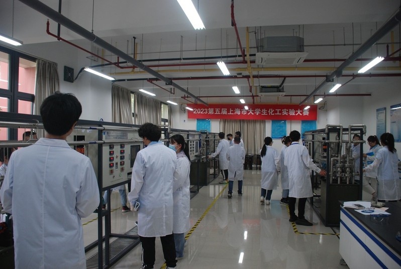 图片说明:参赛选手在奉贤实验7楼的化工原理实验竞赛现场
