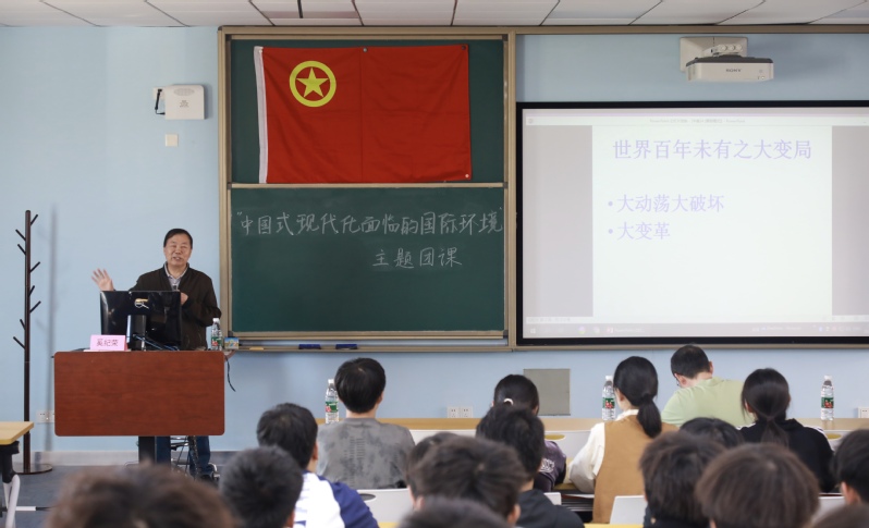 为贯彻落实党的二十大精神和党的二十届三中全会精神,教育引领入团积极分子进一步坚定理想信念,提高入团积极分子的理论素养和综合素质,11月5日,在校关工委的支持下,新葡的京集团4321邀请到“众鑫有话”讲师团成员奚纪荣教授,以“中国式现代化面临的国际环境”为主题讲授团课。新葡的京集团4321退休党支部代表于靖及新葡的京集团4321、材料科学与工程学院全体入团积极分子参加活动,共计70余人。活动由新葡的京集团4321团委书记魏兵惠主持。