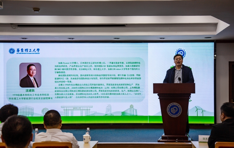 在当今全球能源结构持续优化的背景下,新能源产业正以前所未有的速度蓬勃发展。沈建跃首先概述了新能源的发展脉络与多样形态,进而强调了氢能产业发展的迫切性与重要性。他指出,氢能凭借其零碳排放和高能效的显著优势,被公认为“终极能源”之一,在交通、工业、建筑等多个领域展现出广阔的应用前景,是实现能源转型和可持续发展的理想选择。回顾过去30年,全球氢能产业已取得显著成就,绿色氢能对于气候安全、能源安全以及实现“双碳”目标将发挥越来越重要的作用。沈建跃深入剖析了多种制氢技术、氢能的储存、运输及多样化应用,并客观审视了氢能产业发展路上遭遇的主要障碍与挑战。他同时指出,甲醇作为一种既清洁又高效的替代燃料,是极为理想的液体储氢载体,能够有效破解氢气在制备、储存、运输及加注等环节面临的难题。如何合理且高效地推进甲醇燃料的应用,成为了打通绿色氢能产业链、促进其全面发展的核心关键。他希望母校华理师生把握国家能源高质量发展战略契机,发挥学科特色和传统优势,积极关注氢能领域的发展机遇,努力为学科与行业的共同发展作出华理的贡献。