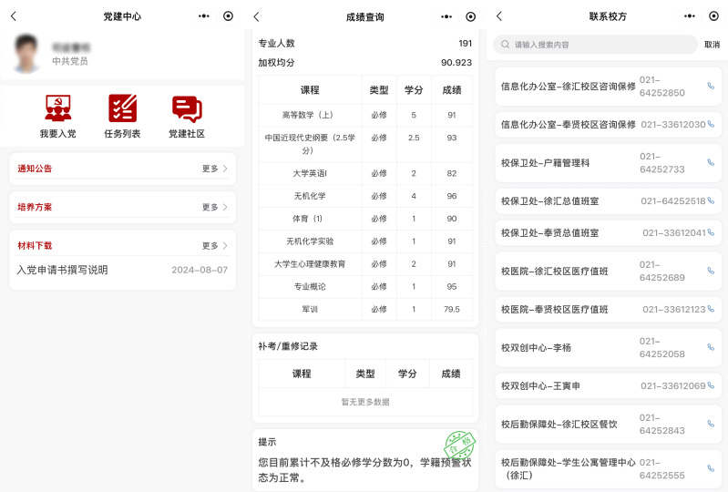该小程序以“智慧学工”为核心定位,打破传统学生工作的物理边界,围绕学生成长全周期需求,构建起涵盖个人信息、信息公开与材料下载、成绩查询和奖助申请、事务信息统计、党员发展、通讯录等六大功能模块的数字化矩阵,实现精准赋能。