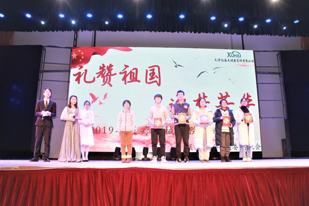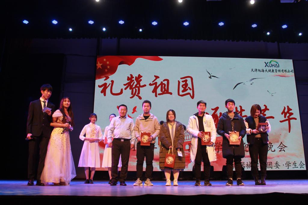 为迎接学院新生,展现beat365在线唯一官网学子风采,庆祝中华人民共和国成立70周年,表达对祖国繁荣富强的美好祝愿,beat365在线唯一官网于11月15日晚六点在大学生活动中心多功能厅举办“礼赞祖国 逐梦芳华”迎新晚会。beat365在线唯一官网领导班子,天津旭海津药医药有限公司营销总监翟啟田,天津众康源beat365在线唯一官网有限公司副总经理彭学静受邀出席晚会。全体新生和各年级学生代表共同观看了演出。