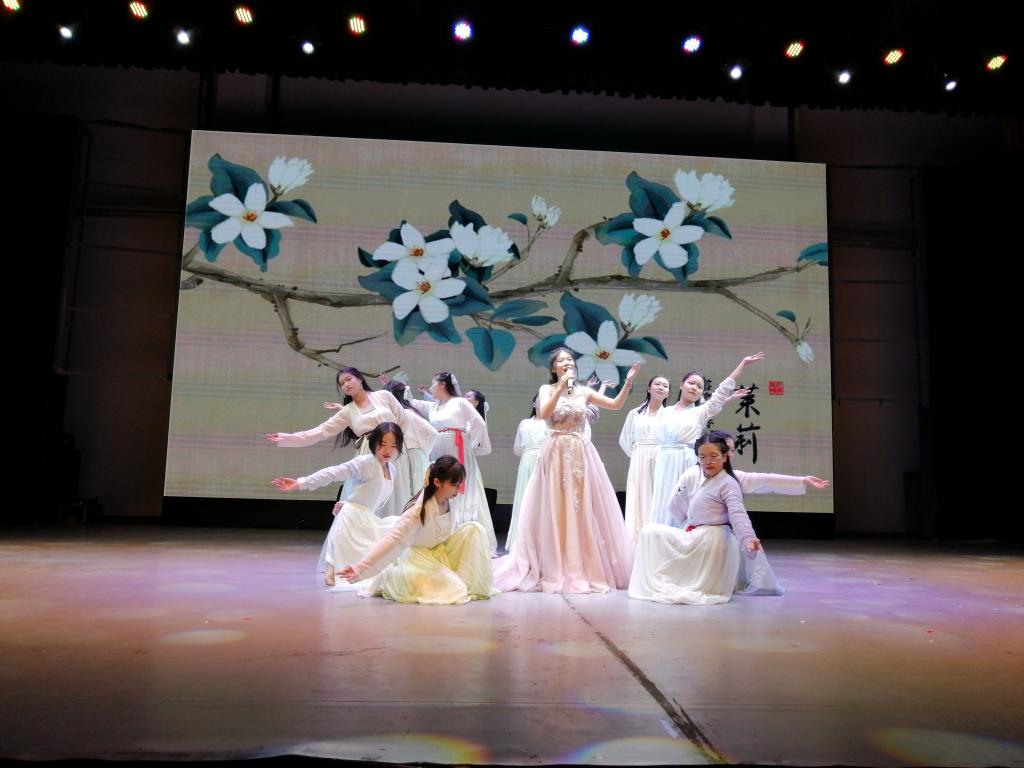 一句“冰雪为容玉作胎,柔情合傍琐窗开”,将观众带入歌舞《茉莉花》中。