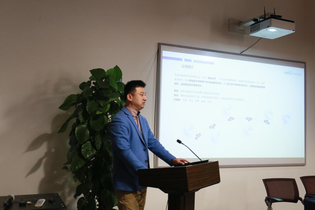 仪式结束后,东软汉枫相关部门负责人以医疗科研创新、智慧物联医院建设与应用、智慧医院管理、硬件研发设计等为主题做专题报告,同时从5G移动远程医疗、临床数据采集、医疗废物管理系统等方面为师生答疑解惑。