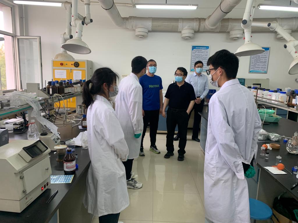 程卯生校长对学院各实验室、工作室逐一进行检查,对实验室硬件设施使用、安全管理情况及学院学科建设与发展给予了指导。在各实验室、工作室,程校长与学生进行了亲切交谈交流,详细询问自校园封闭以来大家的学习、生活和工作情况,并鼓励大家克服困难,努力完成好科研工作。程卯生校长强调,居家办公的老师们要坚持每天在线上与学生交流、谈心、指导实验;入校值守的老师们要贴近学生生活、关心关爱学生,积极开展调研,畅通意见反馈渠道;各实验室要做好实验室安全,学生们做好个人防护。