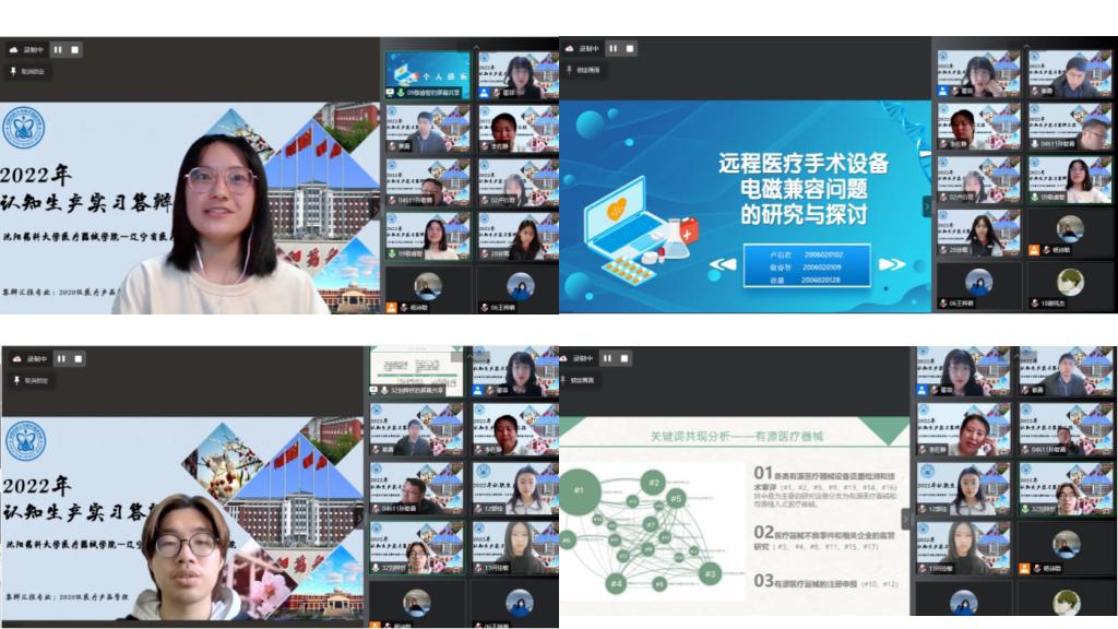为及时分享学生在本次认识生产实习的收获与感悟。4月15日上午,学院召开了2021-2022学年下学期医疗产品管理专业认识生产实习答辩汇报会议。辽宁省医疗器械检验检测院专家孙智勇、beat365在线唯一官网副院长崔勇、基础与信息学系主任李佐静、专业负责人项荣武及部分教师出席会议。会议由翟菲主持。答辩专家组组长孙智勇主持答辩流程,同学分9组答辩并回答专家提问,其中第五组“远程医疗手术设备电磁兼容问题的研究与探讨”和第九组“有源医疗器械共现分析文献解读”在展示美观性、汇报逻辑性、准备充分性和语言流畅性得到专家组的一致认可和表扬;beat365副院长崔勇代表学院,感谢辽宁省医疗器械检验检测院对beat365认识生产实习的大力支持,并作实习教学总结。总结中提到2020级认识生产实习,相较于去年质量更高、内容更广、形式更新,通过专家、带教教师、学生的共同努力,为“疫情大考”背景下教学模式的探索提供了成功范例。