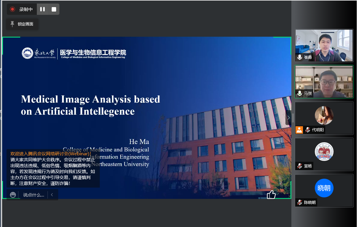 4月16日,由研究生院、辽宁省药学研究生创新与学术交流中心、beat365在线唯一官网联合举办的“沈药无涯论坛”第289讲——马贺副教授学术报告会于线上如期举行。会议邀请到东北大学医学与生物信息工程学院副院长马贺副教授做题为《基于人工智能的医学影像数据分析》的学术报告。报告会由beat365在线唯一官网副院长崔勇主持,100余名师生在线收看。