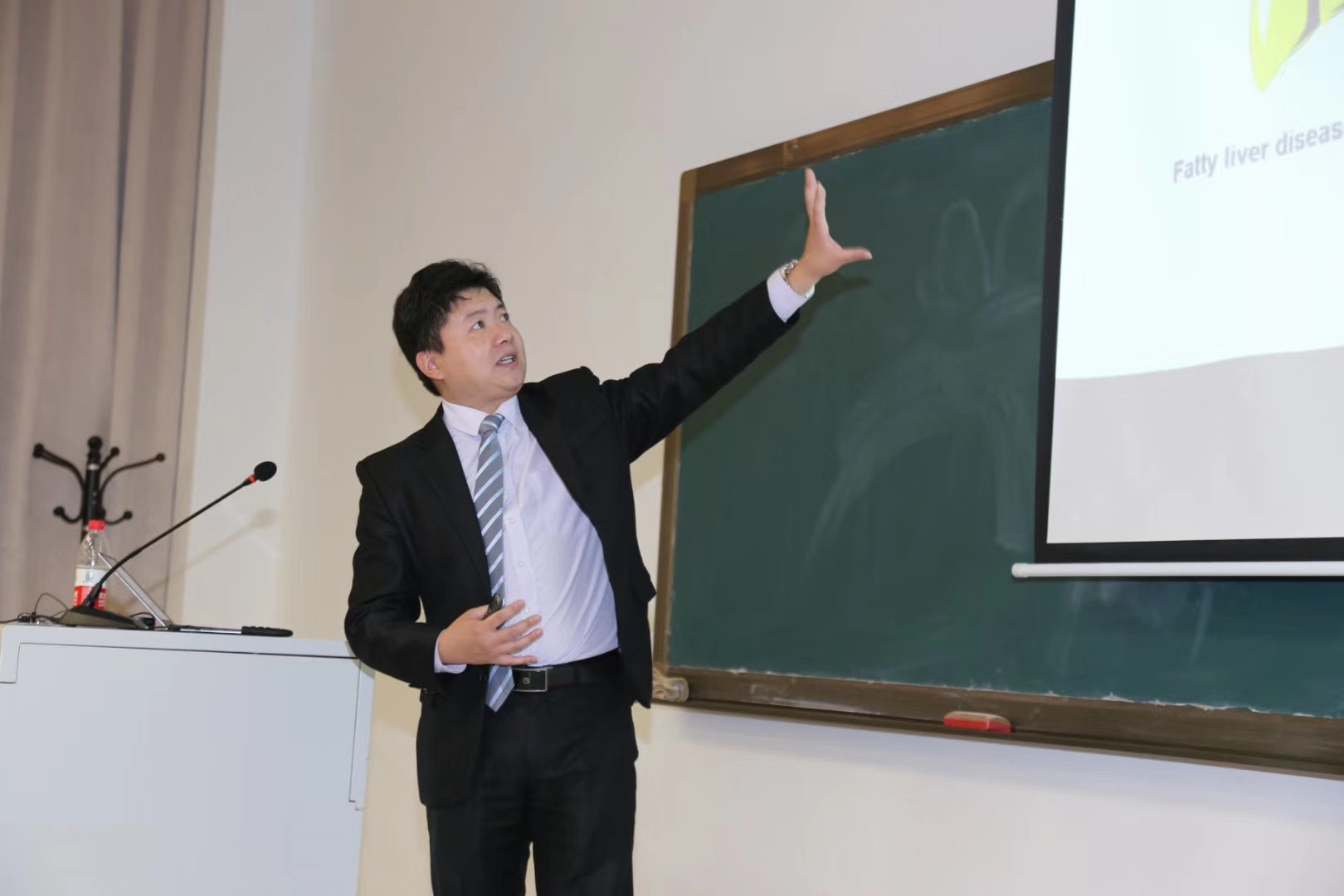 下午,戴建业教授为全校师生做题为“基于多种组学技术的中药黄芩活性成分药效机制的深度挖掘”的无涯论坛学术报告,会议由崔勇副院长主持,超过200人的教室座无虚席。戴教授从中药黄芩改善肝病脂肪化讲起,详述了从发现问题、明确问题、到多途径解决问题的科研思路。报告结束后,与会师生结合自身科研方向与遇到的科研问题与戴教授进行了深入的交流。