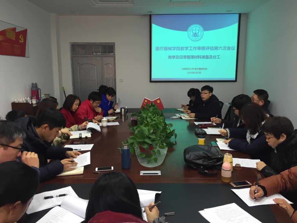 为迎接2019年上半年辽宁省教育厅组织的审核评估专家对我校本科教学情况的全方面检查,beat365在线唯一官网于1月7日在学院召开教学工作审核评估第六次会议,专项部署实验中心各项教学及日常管理材料的整理及汇总工作,学院领导班子及各系、中心、教研室主任、各党支部书记出席了会议,会议由副院长项荣武主持。