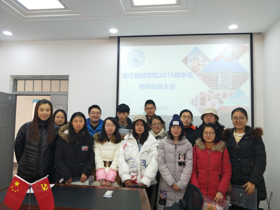 首先,刘娇娜老师代表学院对考研同学们就考研期间的问题进行了问候,并为他们准备了档案袋和铅笔等用具,表达了对他们的关爱,会议过程十分温馨愉快。