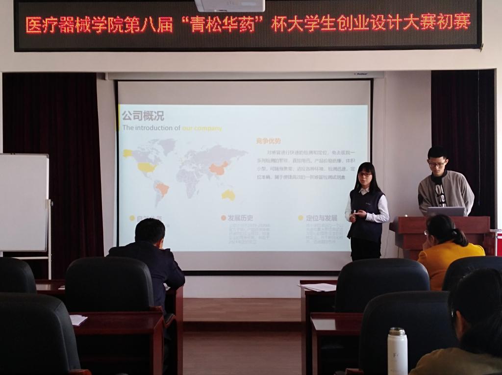 为更好地展示大学生的才华,激发大学生的创新和创业意识,彰显创新、创业元素,学院团委决于4月15日在会议室开展第八届“青松华药”杯大学生创新创业设计大赛初赛,莅临本次比赛的指导老师有院团委书记刘娇娜、数学教研室姜希伟老师、物理教研室张红艳老师和孙言老师。