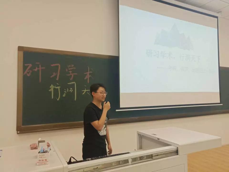 讲座开始,赵琳与黎萍学姐为同学们分享了考研经验,赵琳学姐从择校、初试、复试入手,推荐了多个对大家择校有帮助的公众号。黎萍学姐的“授课”风格颇为风趣,讲述了很多考研路上的小故事,坎坷之多凸显出学姐的毅力。随后张丽萍学姐将保研的条件逐一列出,之后为大家详细介绍了保研的基本流程及准备工作,并指出参加夏令营争取到“优秀营员”将会有丰厚的福利。最后是费云扬学长的留学经验分享。他说:准备出国留学的同学要有一个漂亮的简历,简历里要有你参加过的比赛奖项,在面试时要表决自己努力的决心,同时要体现出自己的实力。在研讨会接近尾声时,一位大二的同学向费云扬学长请教了问题:去日本留学对于日语要求会不会很高?学长表示自己的日语水平也不足以和日本大学生正常交流,但这并不影响他的出国进程。随后,研讨会也在热烈的掌声中拉下了帷幕。