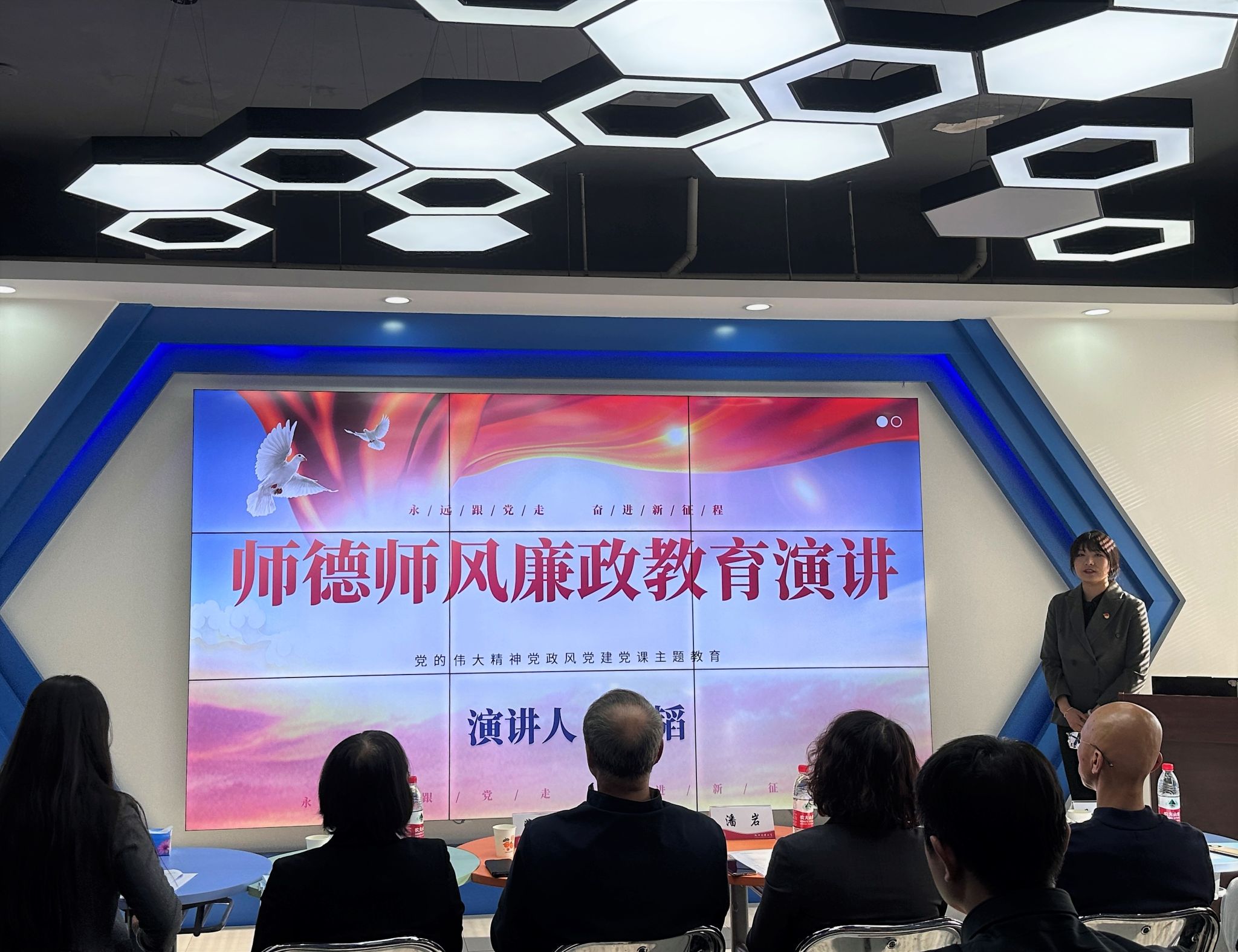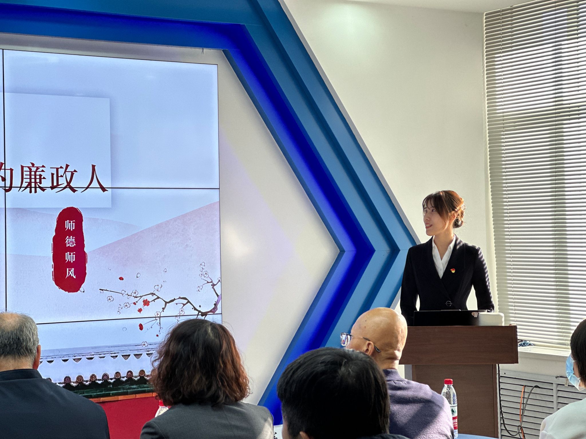 校纪委副书记潘岩对比赛进行了整体点评及总结发言。潘书记表示本次比赛内容涵盖古今,演讲形式贴合教师工作实际,充分展现了新时代高校教师形象,演讲内容丰富、活动载体新颖,希望学院持续深化师德师风教育,教育引领教师贯彻落实立德树人根本任务,认真学习领会关于加强高等学校反腐倡廉建设等相关文件精神,筑牢全面从严治党思想基础,推动廉政文化建设走深走实,进一步助推学院及学校中心工作高质量发展。