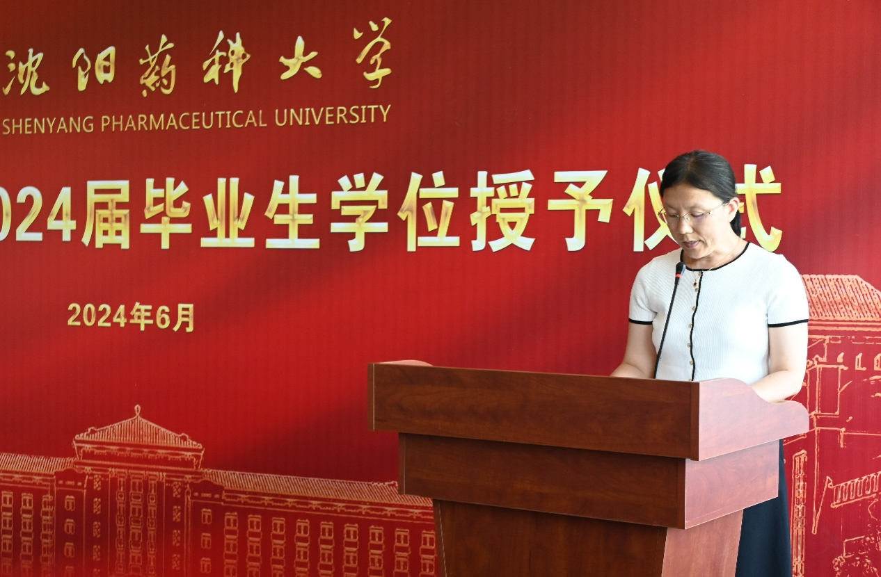 毕业生郭佳代表全体毕业生发言。郭佳深情地表达了对母校、师长诚挚的敬意和衷心的感谢,并表示一定不负祖国、母校所托,始终保持迎难而上、笃定前行的勇气,做新时代主动担当的奋斗者,以青春之我、奋斗之我,为药学事业发展架桥铺路,为母校发展增砖添瓦,让青春在奉献中焕发出更加绚丽的时代之光。