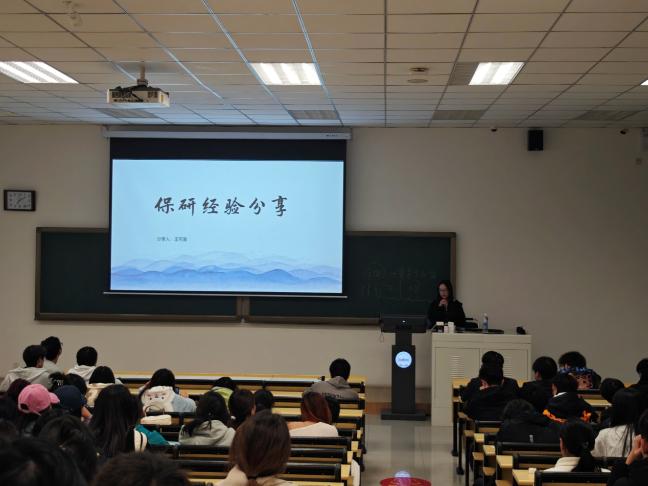 罗立涛以“讲述我的故事,给予你们力量”为主题,讲述三年来的心路历程,从目标确立到分解任务,以自身发展经历为学弟学妹们带来详尽的个人规划,给予学弟学妹奋斗的力量。王可盈同学以切身经历,分享了自己保研的心路历程,鼓励大家找到自己正确的航向。